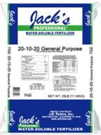 Our system is set up to use a water-soluble fertilizer and inject the solution into the water going to the plants. The fertilizers we chose are very hydroscopic and will begin to clump with the exposure to humidity in the air. We try to keep the bag sealed and inside a bucket. To feed our mums, we prepare a concentrated stock solution in a 5-gallon bucket and then dilute that through the fertilizer injector to the concentration we desire.
