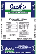 The daily feeding of mums is divided into three timed phases. Phase 1 is the vegetative development phase. This is roughly the first half of the growing season. Mums are heavy feeders. Lack of fertility during this phase will adversely affect plant size and quality. During this phase we use Jack’s 20-10-20. The recommended feeding rate for mums is 200-350 ppm of nitrogen. We fertilize at a rate of 300 ppm throughout the first phase.