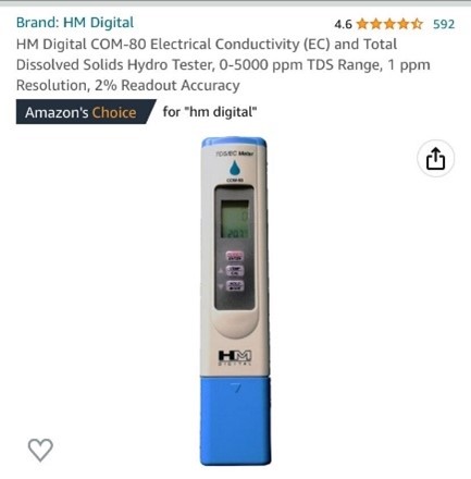 During the day-to-day operation of the mum garden, the actual delivered concentration of the fertilizer being delivered must be monitored. The method usually used is electrical conductivity or E.C. EC is measured by the use of an Electrical Conductivity meter. The value from the EC meter is a measure of the Total Dissolved Solids (TDS) in the liquid.