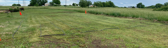 The laterals on the perimeter of the network are ¾” pipes. There are 11 laterals on the inside of network. Ten of those laterals are ½” pipes. The center lateral is ¾”. There are no dead end pipes.