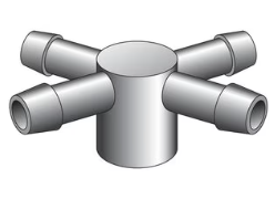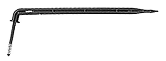 The manifold connects to a small hose from each arm which connects to the actual dripper. Drippers come in short and long lengths. We use the longer length to keep them in the soil. The shorter one would likely work as well as the longer one.